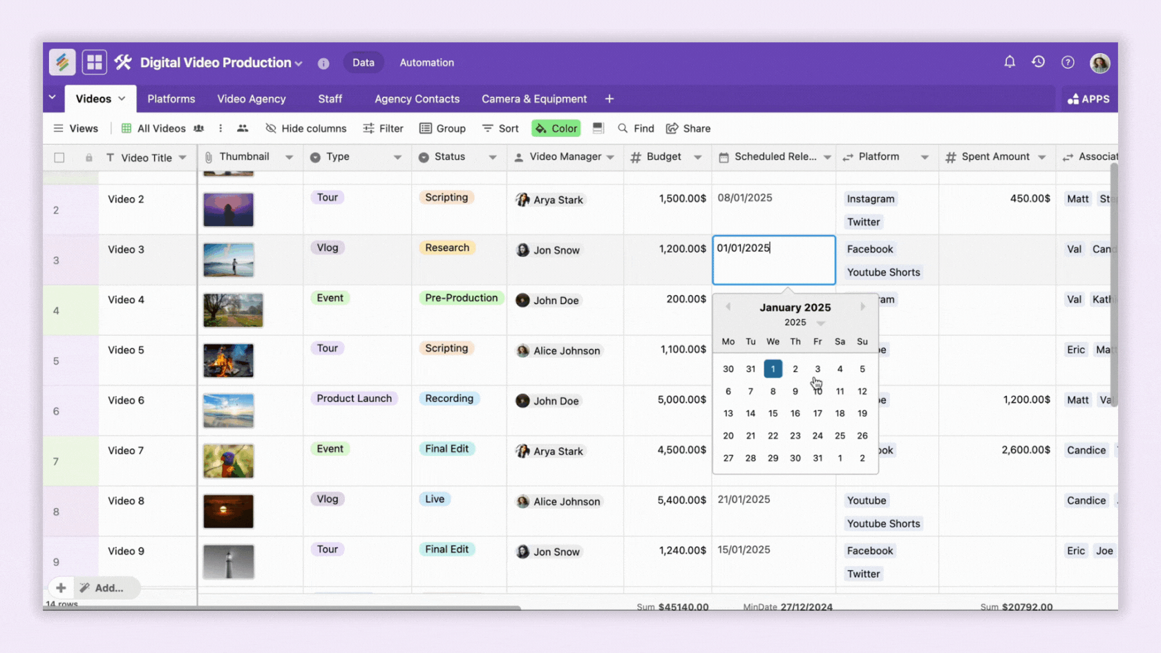 Note: To use Calendar or Timeline Views, you need to have at least one date column type configured.