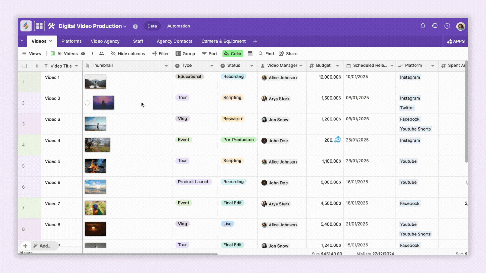 Once you add your files to rows, you can click on the file to preview the thumbnail of the document as well.