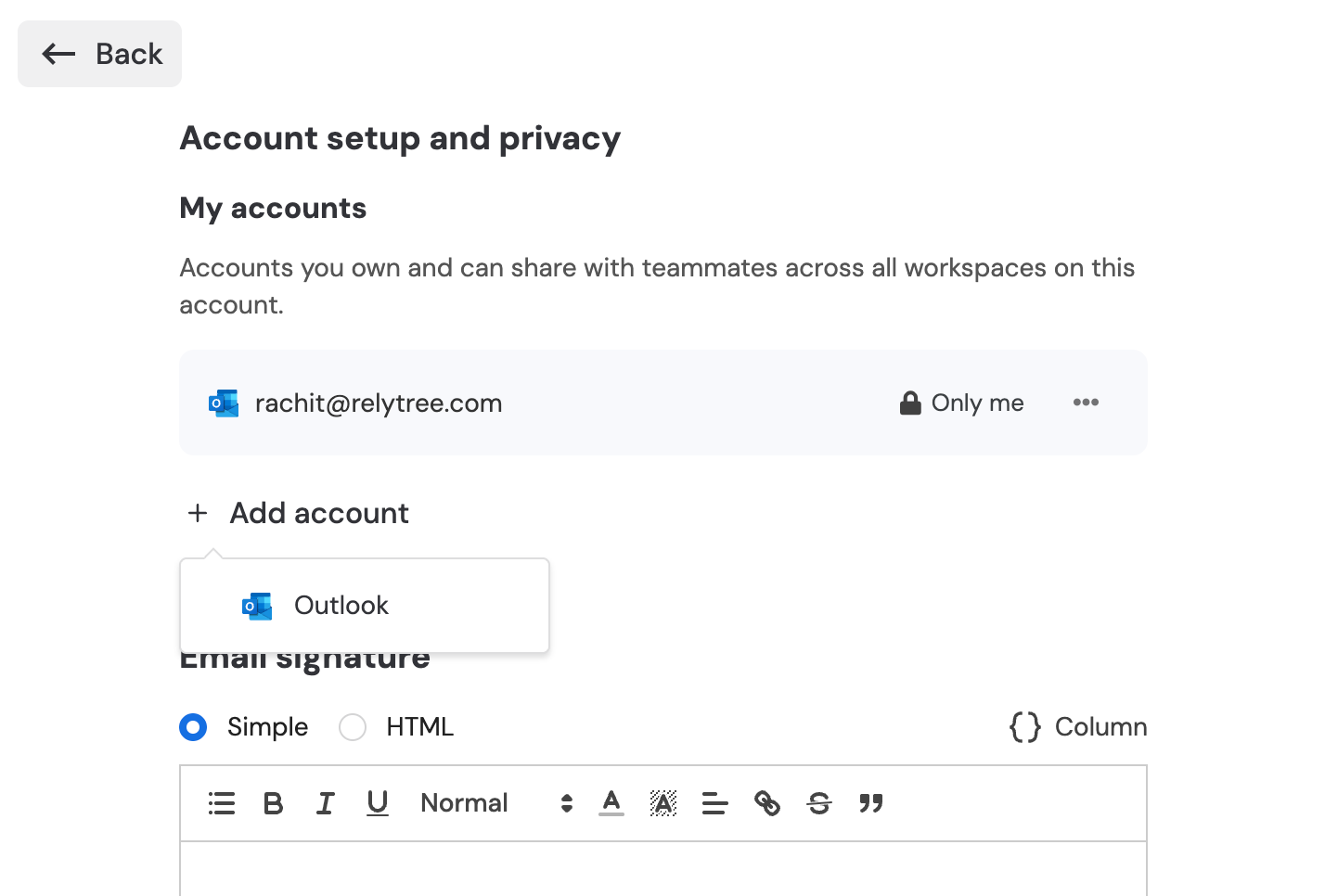 Click on ‘Add Account’ and authorize your email account